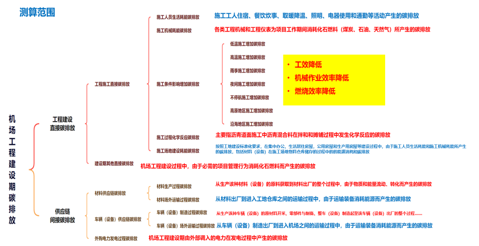 为规范机场工程建设期碳排放测算,我公司参与承担了《机场工程建设碳排放测算标准》,该标准适用于机场生产主体设施、辅助设施及地面交通等工程的碳排放核算。标准明确了碳排放构成,包括工程建设直接碳排放如(施工机械耗能、施工条件影响增加碳排放等)和供应链间接碳排放(如材料和设备供应链碳排放),并采用定额法与系数法相结合的测算方法,构建了从单位工程到项目整体的碳排放汇总表格体系。该标准填补了我国机场工程建设期碳排放计算标准的空白,为机场建设期碳排放数据管理提供了基础支撑,推动低碳技术和绿色建筑材料的应用,助力机场工程建设向“双碳”目标迈进,同时为企业合理控制碳排放成本、参与碳市场交易提供支持。