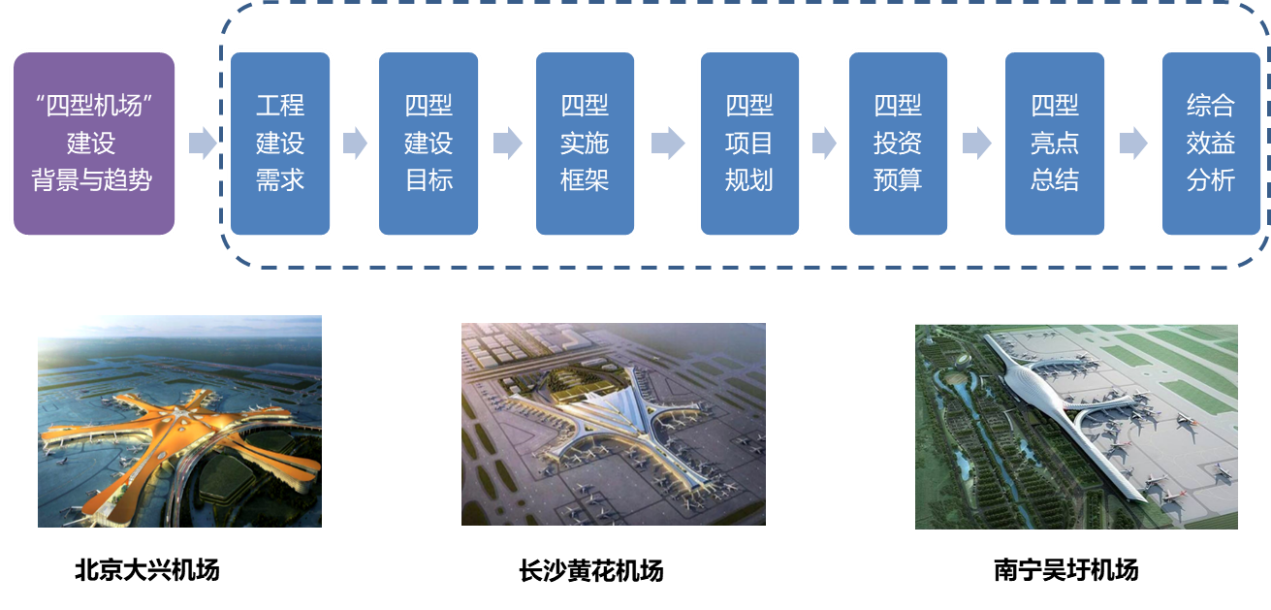 深刻理解平安、绿色、智慧、人文的四型机场核心内涵,规划建设科学有序、安全根基扎实牢固、资源保障可靠有力、业务运行协同经济、航旅服务优质便捷、交通衔接顺畅高效、信息系统集成共享、环境友好绿色低碳的现代化机场,为机场建设提供全面的四型机场专篇。