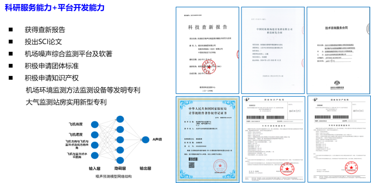 基于多跑道大型民用机场周边航空噪声分布的快速预测与评估方法研究、机场航空器噪声模型解构与优化、工程实施等,开展了科技查新、SCI论文编写、团体标准申请,知识产权申请等工作,研发了一套基于机器学习的机场周边噪声分布快速预测模型,开发了一套机场噪声综合监测平台,在机场噪声、大气监测领域具备突出的科研服务和平台开发能力,帮助机场提升环境管理水平,实现绿色低碳发展。